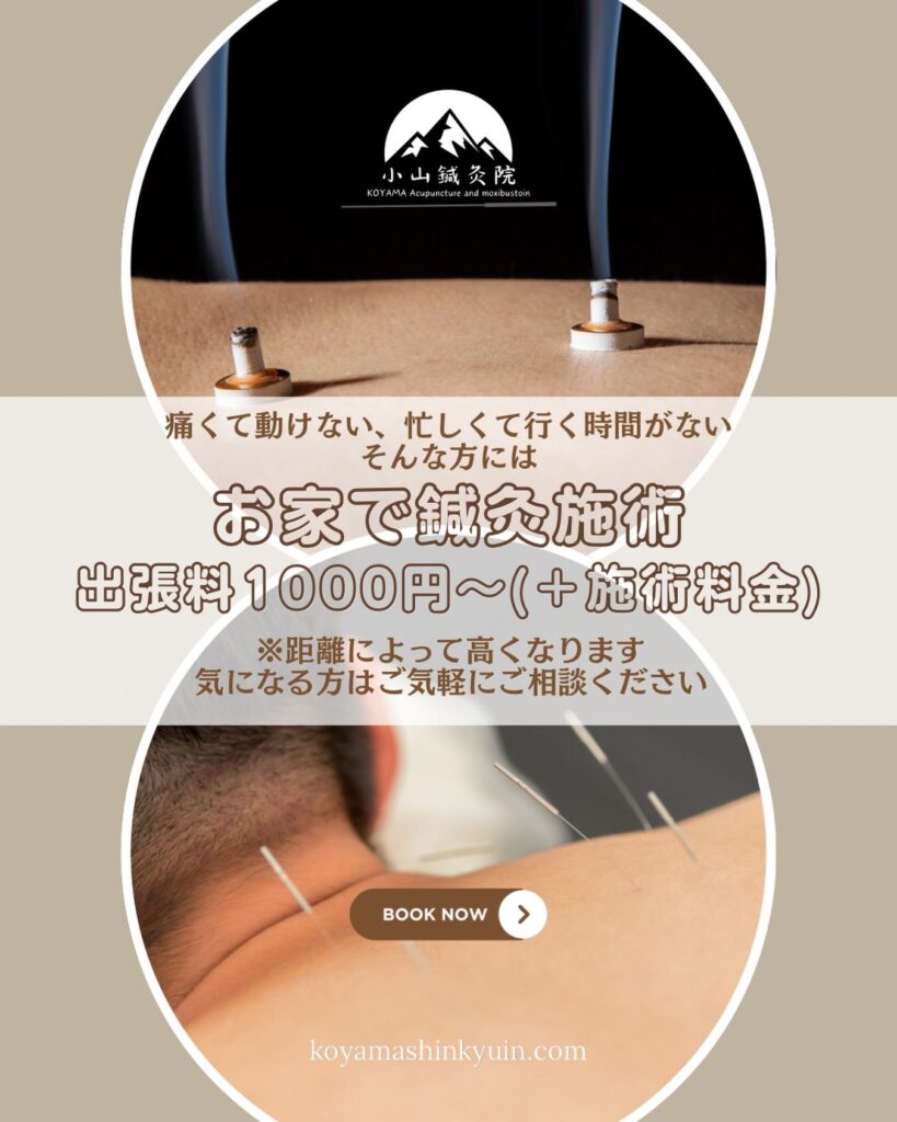 痛くて動けない方、忙しくて通院が難しい方に向けて、ご自宅での出張鍼灸にも対応しております。